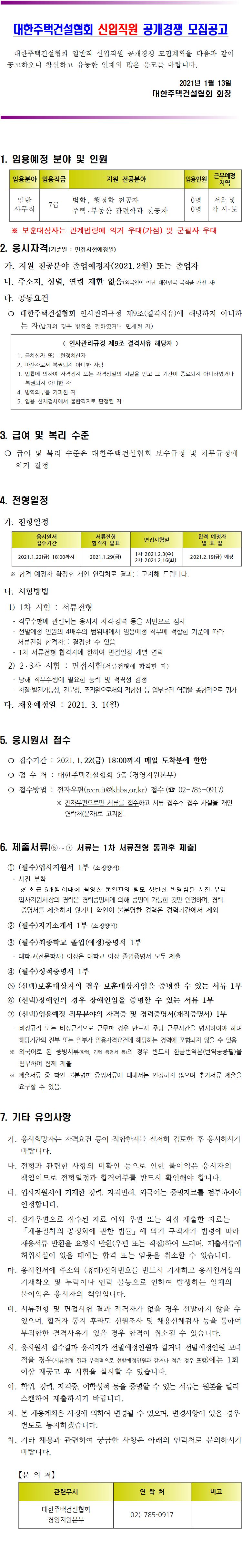 대한주택건설협회 신입직원 공개경쟁 모집공고