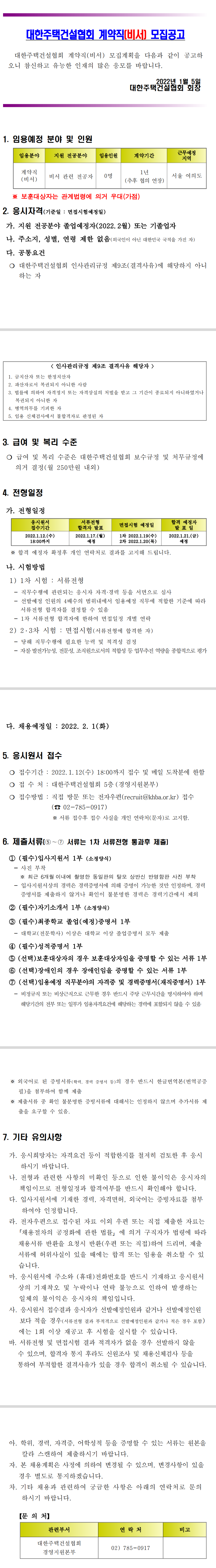대한주택건설협회 계약직(비서) 모집공고