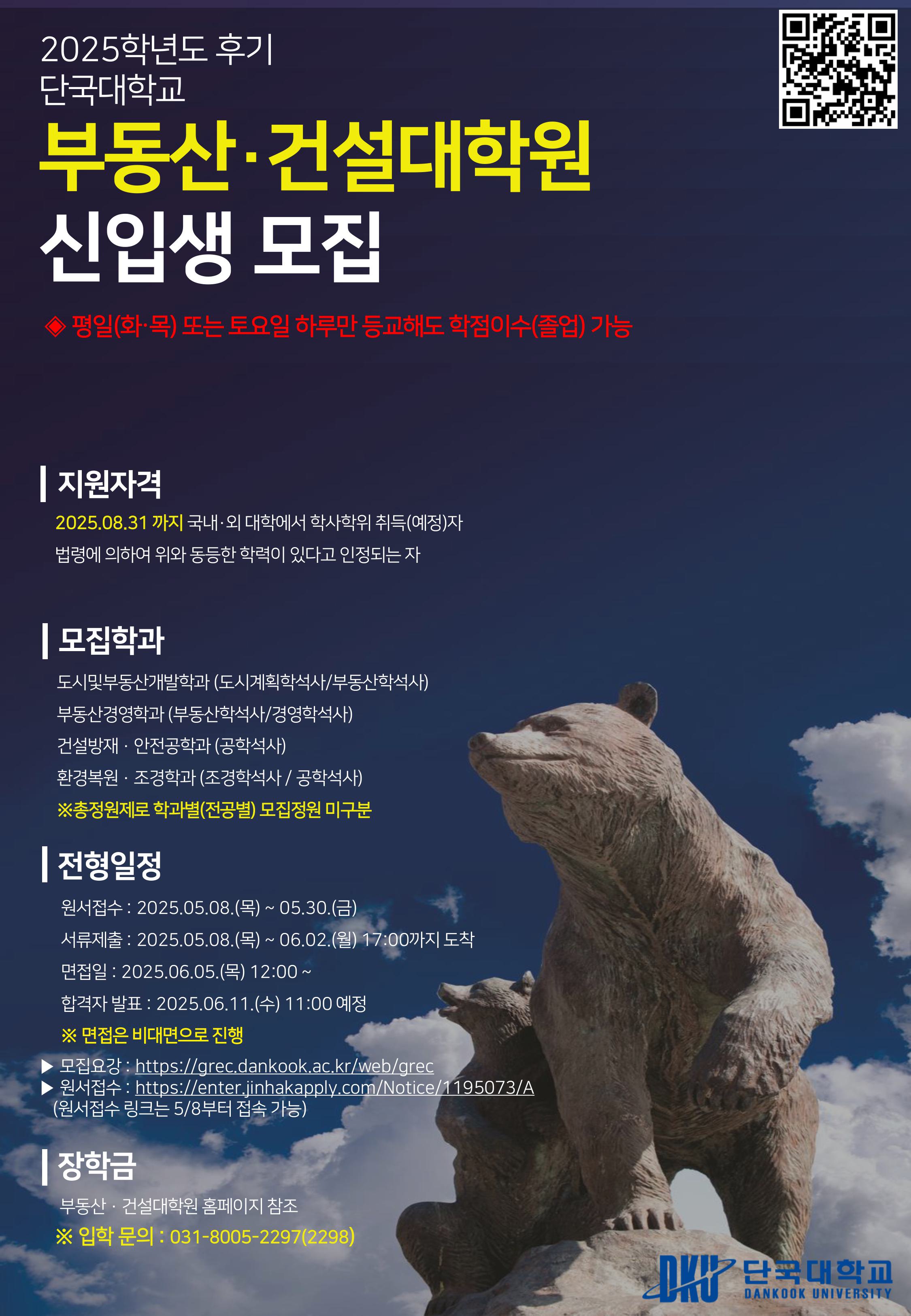2025학년도 후기 단국대학교 부동산·건설대학원 신입생 모집